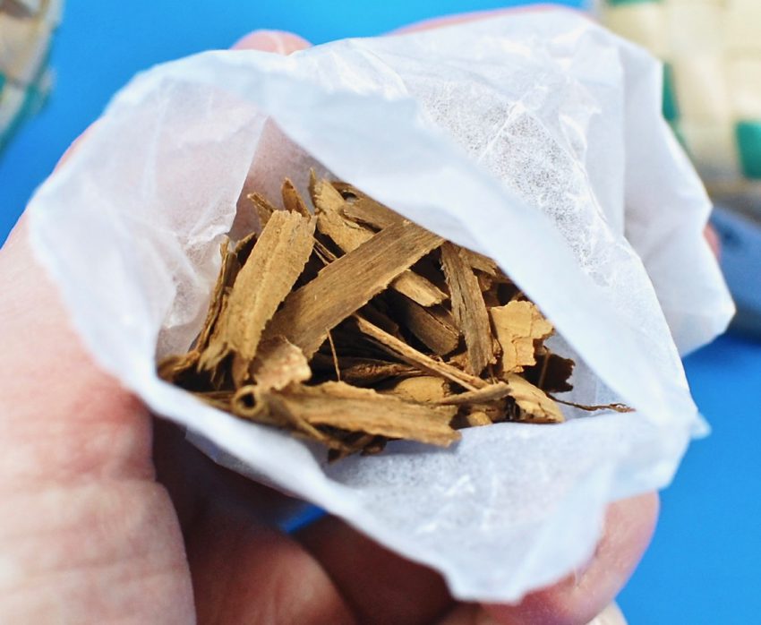 A mini Alakaban box held a handful of pre-made “flavor bombs” filled with a mixture of cocoa nibs, cinnamon, and coconut jaggery. — They called the blend “Cupid’s Concoction” in honor of Valentine’s Day. Those little paper hearts are just too cute! 🙂