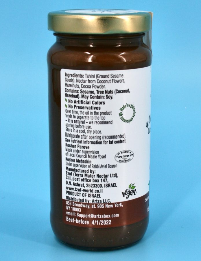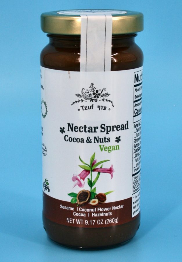 Did I get excited when I saw the word “vegan” printed on this bottle not once, but twice? You bet I did! 😉 This chocolate/nut spread is made with a blend of tahini (ground sesame seeds), coconut flower nectar, hazelnuts, and cocoa powder. It’s also gluten-free and contains no artificial colors or preservatives. I’m not 100% sure what I’m going to spread (drizzle?) this on, but I’m excited to try it!
