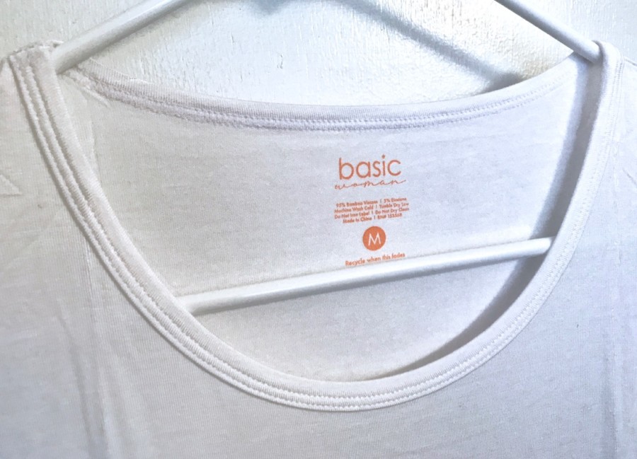 As with the crop top and tank top included in my previous shipments, this white crew tea is constructed of 95% bamboo viscose fabric and 5% spandex. Not only does that make it super soft and stretchy, but also awesomely moisture-wicking and antimicrobial. What more do you need?