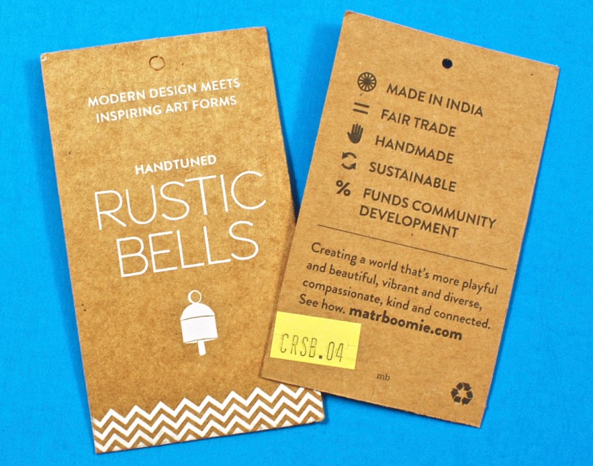 How neat looking is this little bell? Made by a community in the desert Kutch region of India, this piece is a mini version of the classic bells that farmers would use to identify their livestock. Each bell is hammered into shape from recycled tin & iron sheets and each one has its own unique sound.