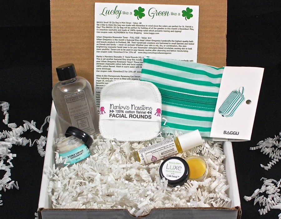 If you’re not aware, Kloverbox is a monthly subscription box that features only the best cruelty free, eco-friendly and organic beauty & lifestyle products. Each box will include 4-5 full size products and if there is ever a food item being featured, it will be vegan (yay!). All boxes and filling are made with 100% recycled materials. The purpose of Kloverbox, is to introduce you to ” cleaner” versions of the products you use on a daily basis.