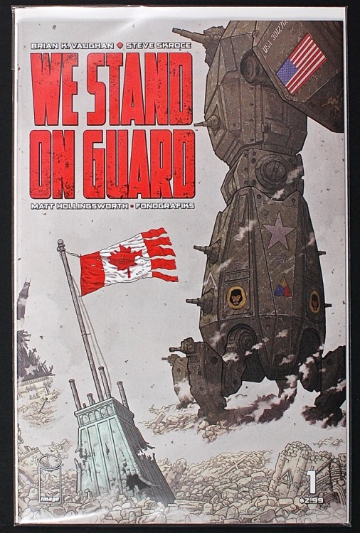 We Stand on Guard #1 by Brian K Vaughan and Steve Skroce (Image Comics) – A 40-page first issue “action-packed military thriller” that involves an invasion of Canada by the United States, complete with freedom fighters and giant robots.