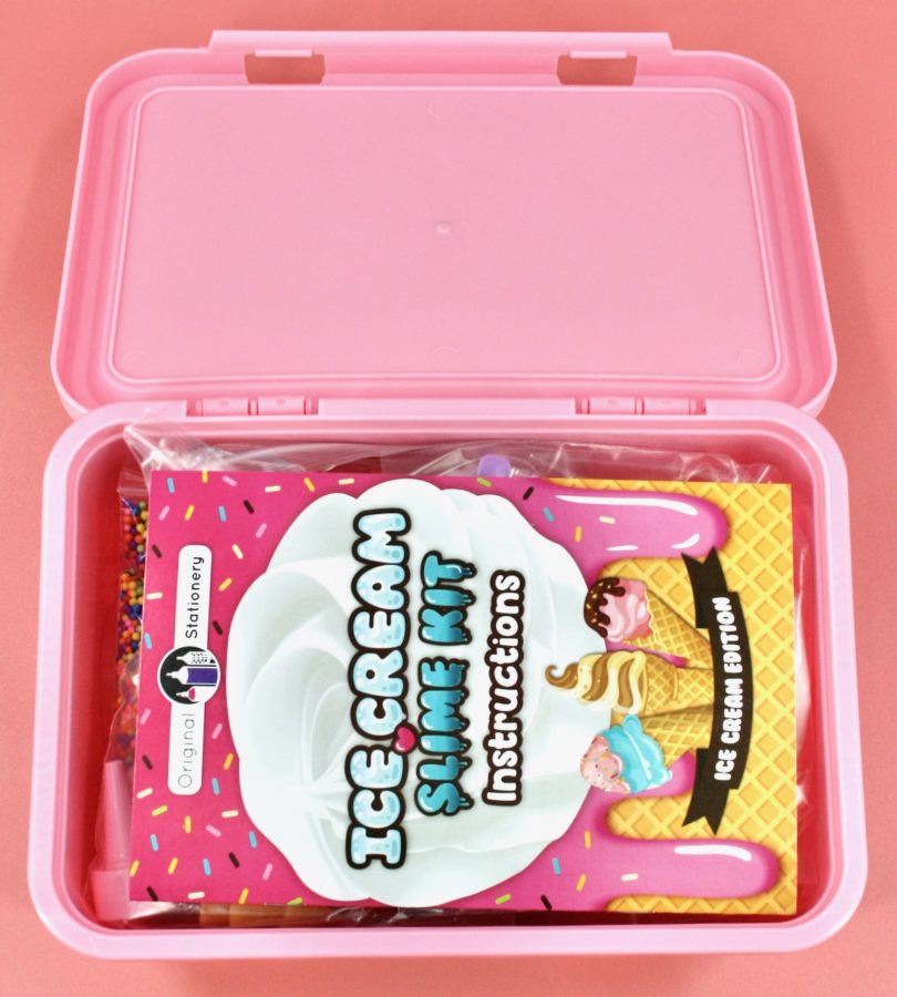 My daughters are both completely OBSESSED with slime, so I knew they’d be all about this cute ice cream themed slime kit. It contained everything needed to make endless slime creations.