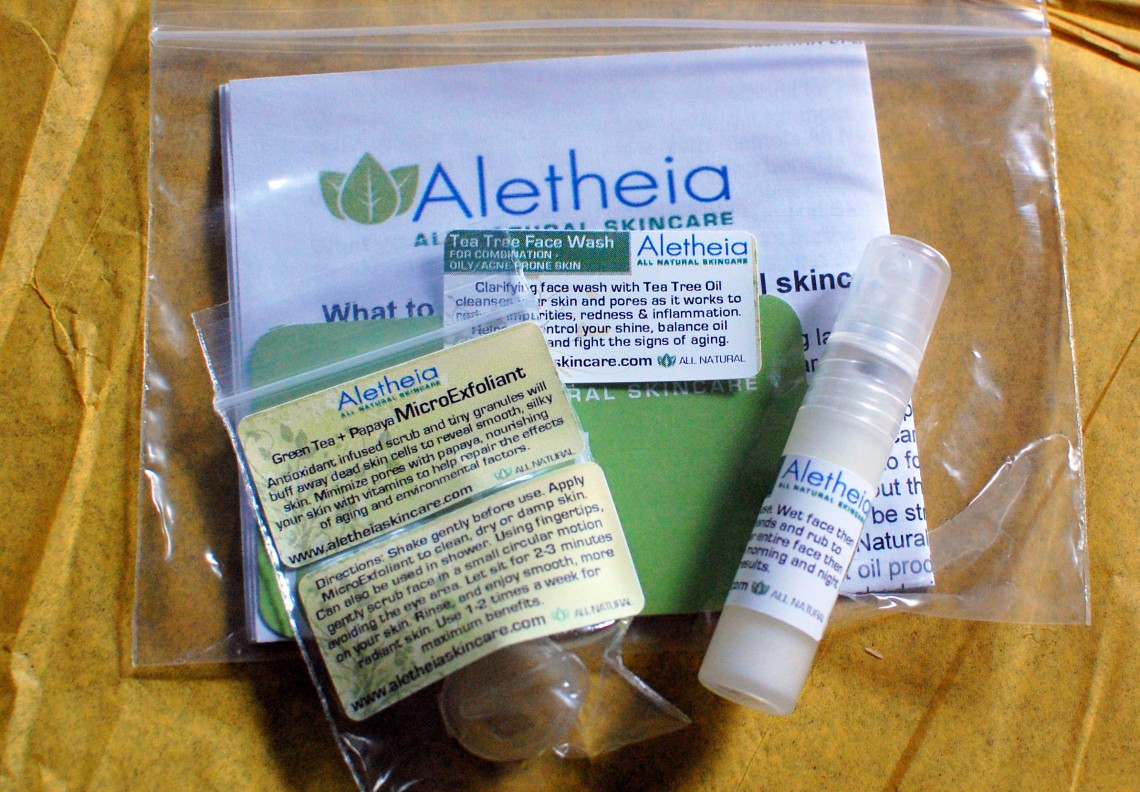 Aletheia Skin Care Products A teeny pot of exfoliant & a tube of tea tree face wash. I already have a face wash that I use religiously, but I suppose I could give these a whirl.