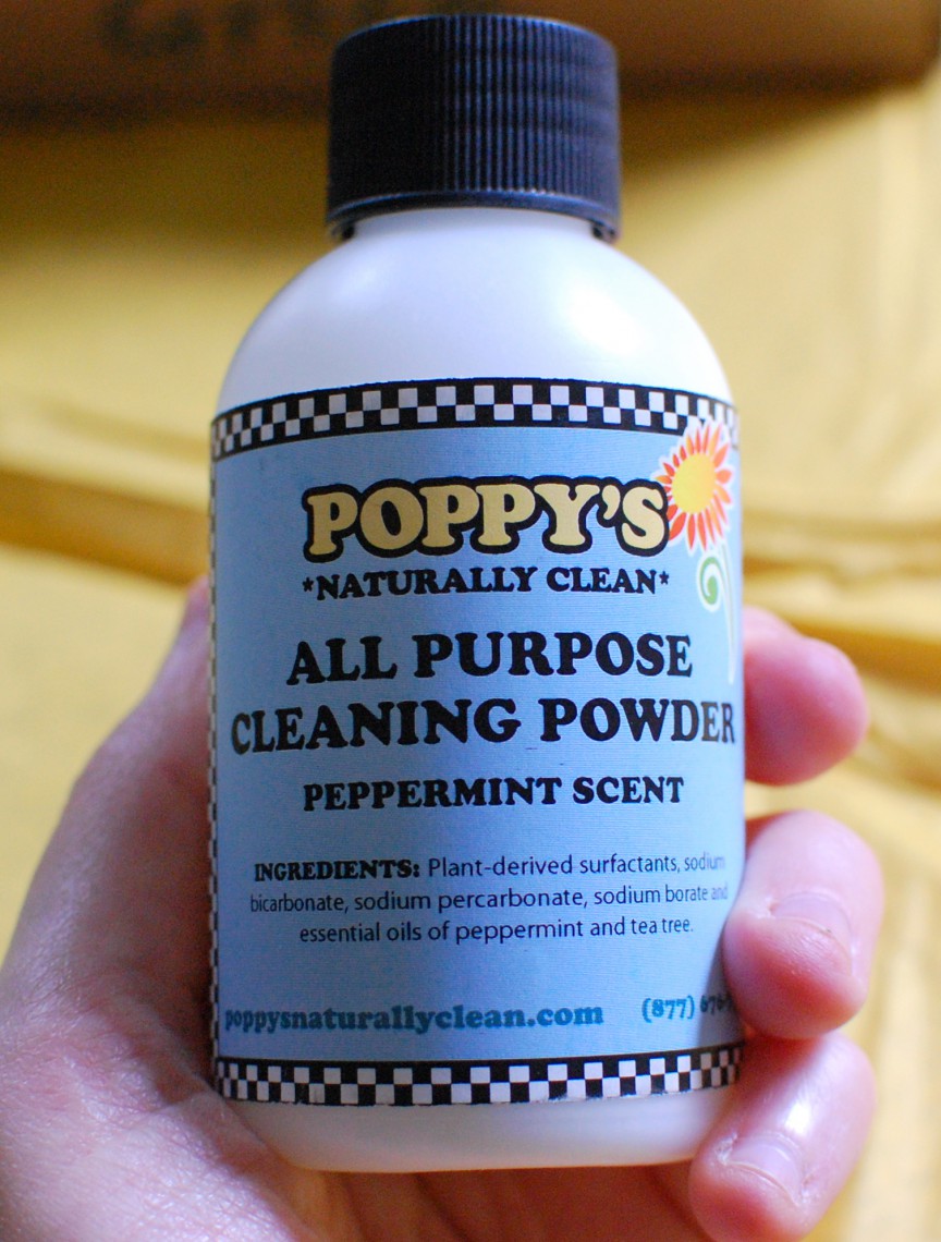 Poppy’s Natural All Purpose Cleaning Powder Whenever I see “Poppy” I think of that episode of Seinfeld where Poppy pees on Jerry’s couch. Perhaps if Jerry had some of this cleaning powder… Ahem… So I’m actually kind of excited about this product. It smells minty and I’ve been looking for something “greener” to clean the bathroom sinks with. This may just be exactly what I need. Woohoo! Thanks Poppy!