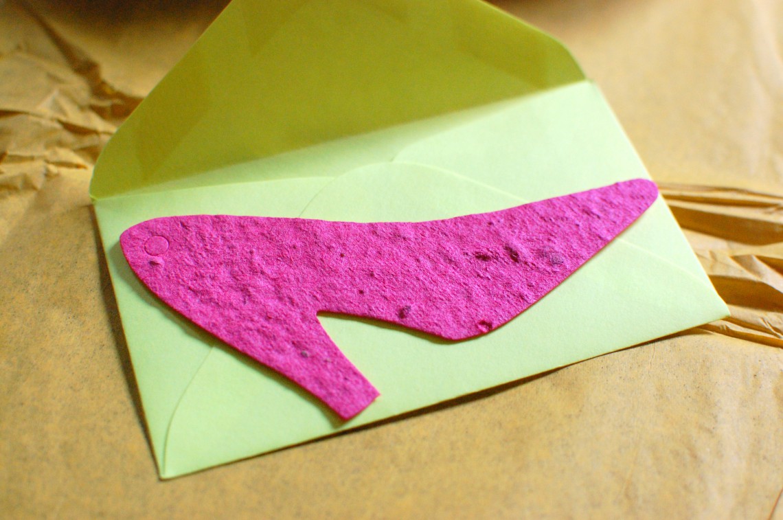 I’m not a fan of heels, but I suppose this is more of a flat. Zing! Aaaanywhoo… This here is one of those paper seed dealies that you plant and (supposedly) watch purty flowers grow. Cute, but I’ll believe it when I see it.