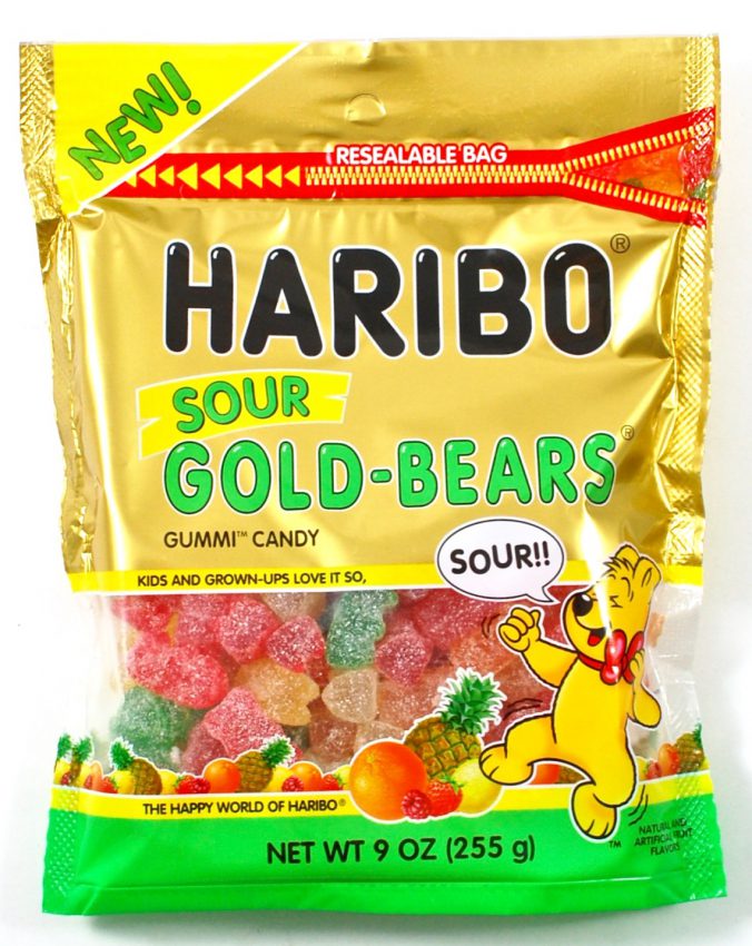 Haribo Sour Gold Bears ($2.79) – Classic gummy bears with a tangy, sour twist. These sugar-dusted gummies come in lemon, orange, pineapple, raspberry, & strawberry flavors and feature a convenient resealable closure.