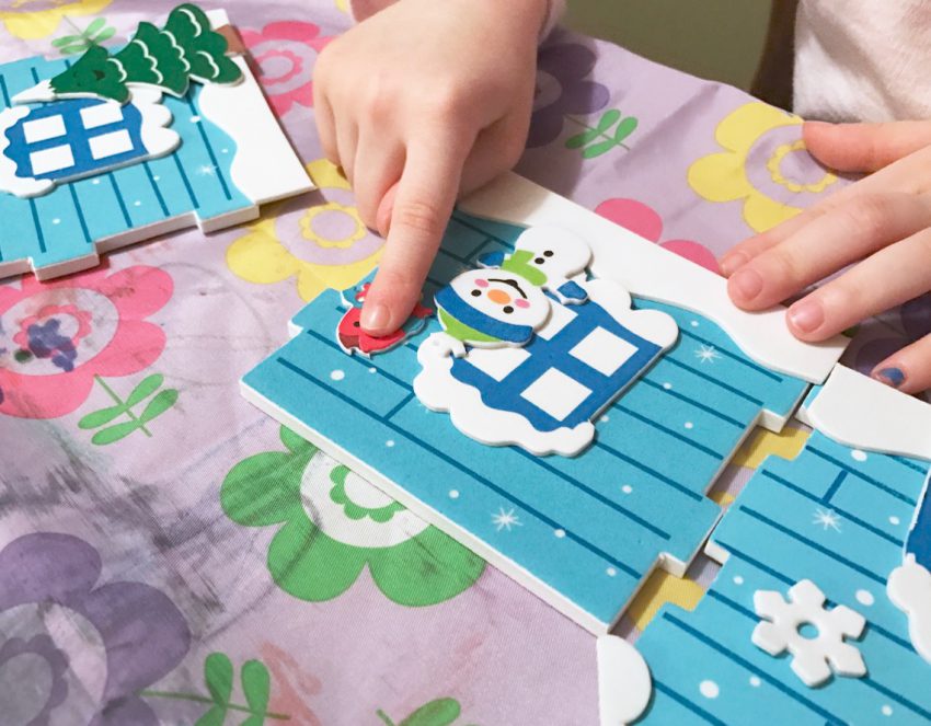 December’s bag featured a reindeer lacing craft “plush”, so now he’ll have a little snowman friend to hang out with.