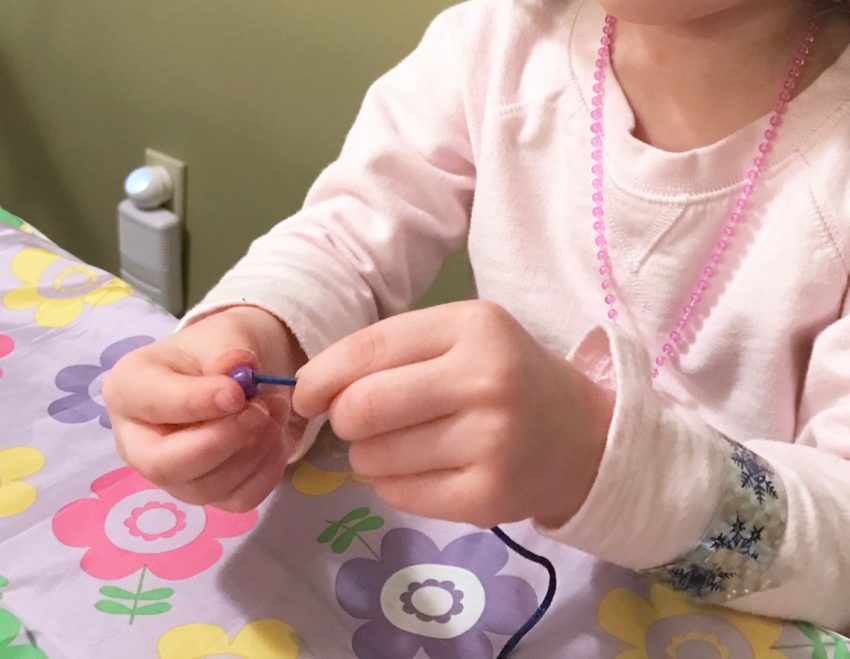 I think this was about how many beads she got in until I had to take over to avoid a mini meltdown. 😉
