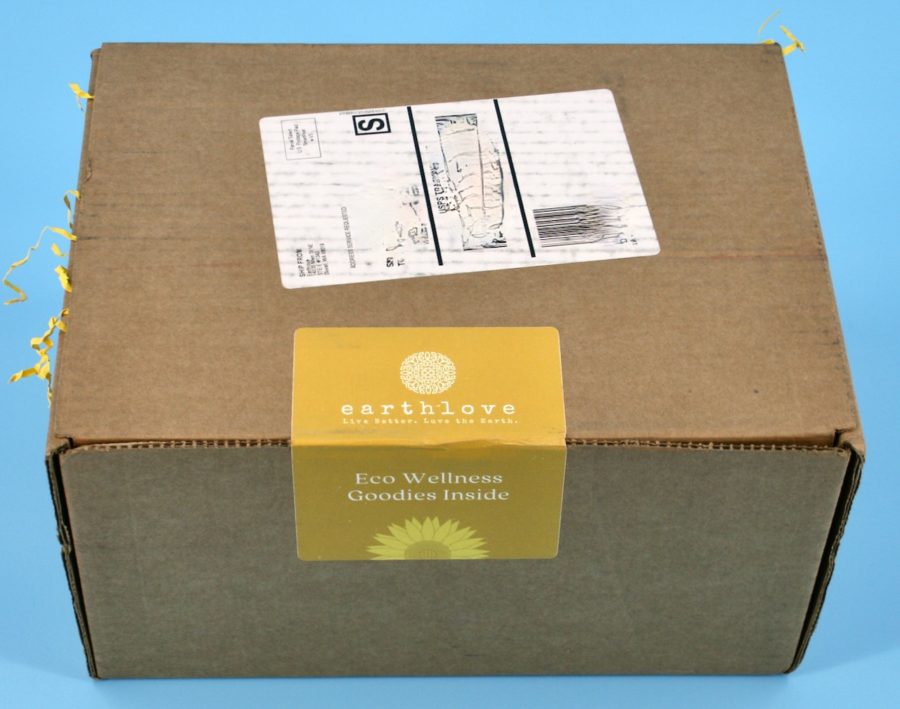 Everything was shipped in a brown box with a yellow Earthlove Box sticker securing it closed.