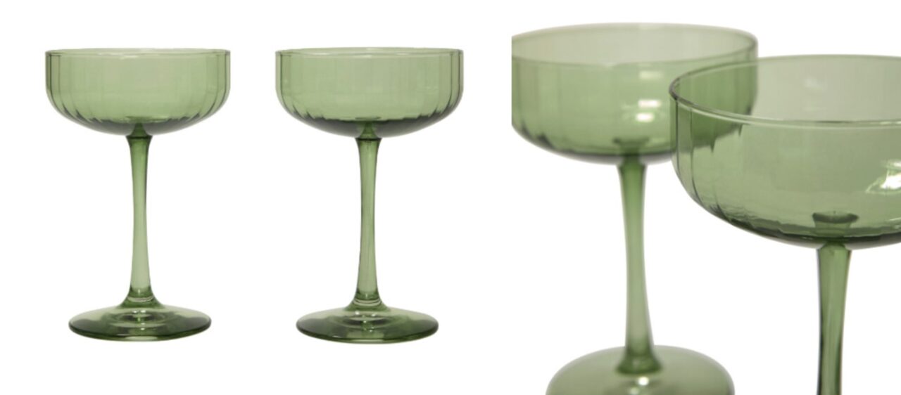 Serve some serious vintage charm this holiday season with this set of two green coupe glasses. Crafted from sleek soda lime glass, these beauties are perfect for everything from sparkling champagne to festive mocktails, adding a touch of old-world glamour to every sip. They’re a perfect gift for the host with the most, or a stunning addition to your own holiday bar cart.