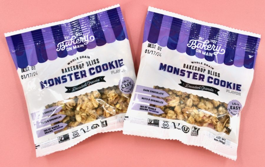 “Monster Cookie” granola features a decadent blend of gluten-free oats, dark chocolate chips, almonds, rainbow sprinkles, and more. It’s gluten free, non-GMO, vegan-friendly, and has 16 grams of whole grains per serving. Both of my kids love this stuff, so I’m glad they included two bags. 😉