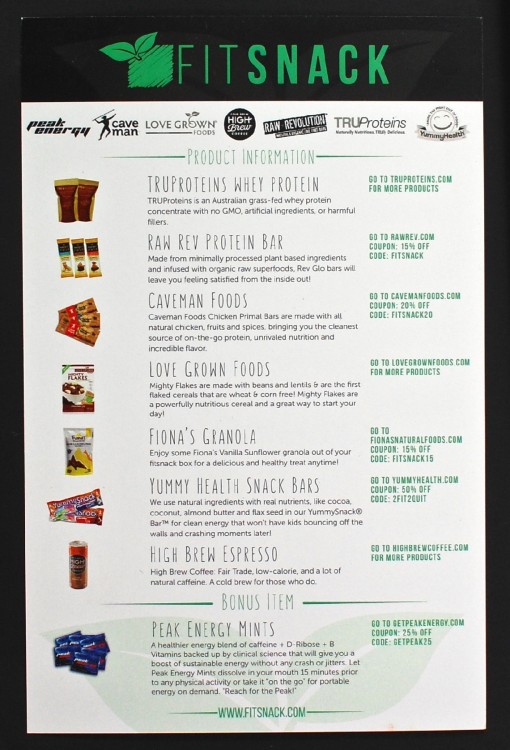 As always, an info card listed all of the snacks, as well as short descriptions and a few discount codes.