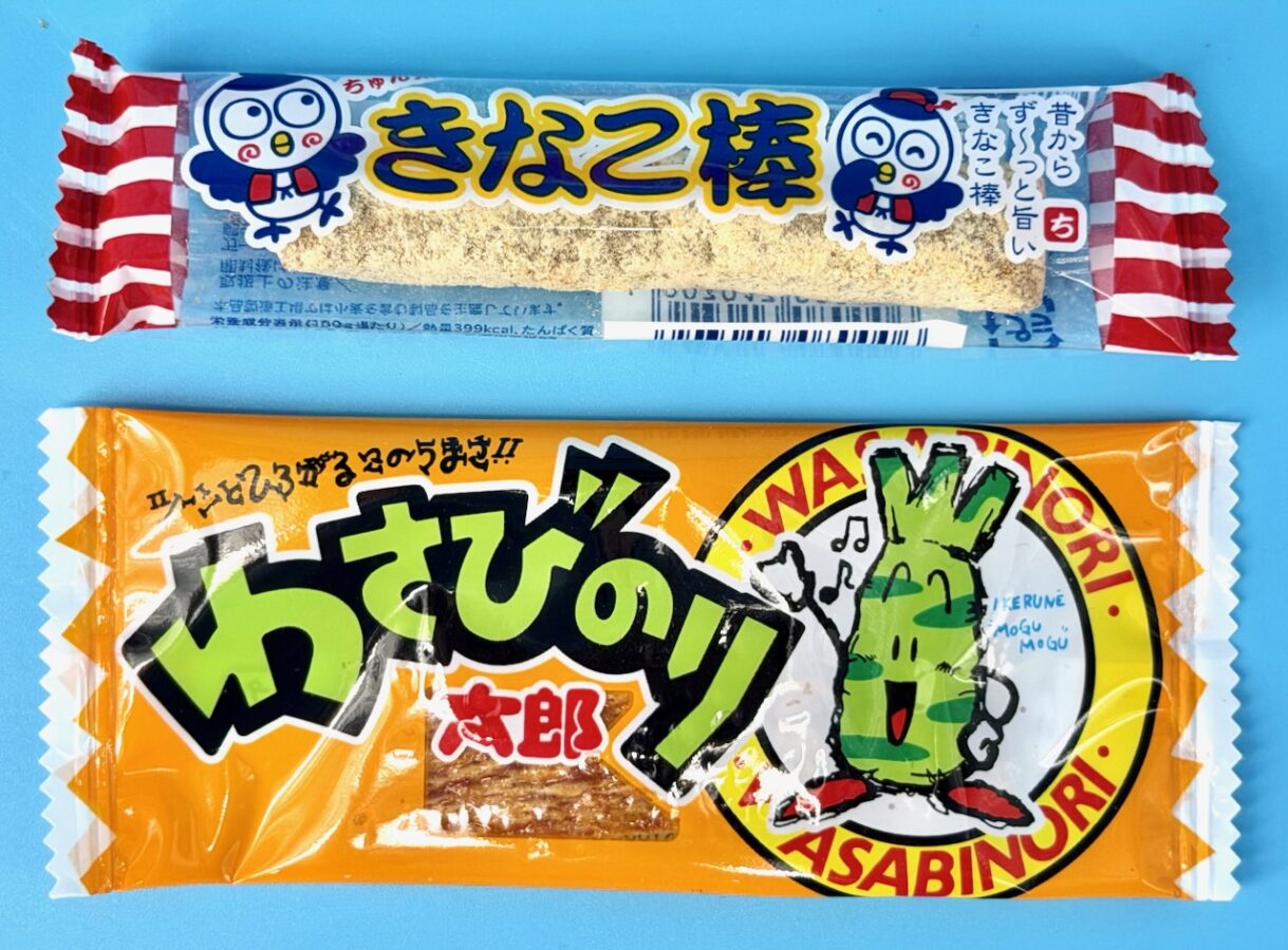 The “challenge snack” for December is a traditional Dagashi — nostalgic & unconventional — Japanese snack called Wasabi Nori Taro. It’s a flat dried(?) strip containing a mixture of fish/squid, nori (seaweed), and wasabi.