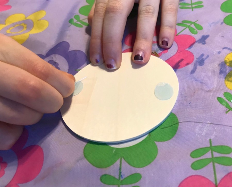 Once the dolls were painted/dry, they were attached to each stage with a single glue dot. — The girls loved how cute they turned out!