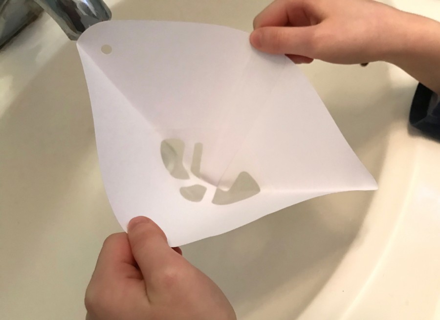 Using the clothespin, we hung one of the x-ray sheets in the machine and placed it by a window. Unfortunately, it was already pretty dark out by the time we got to this part, but you can still see the slight outline of the x-ray showing through the image. We’ll have to experiment with this more when it’s lighter out. 😉