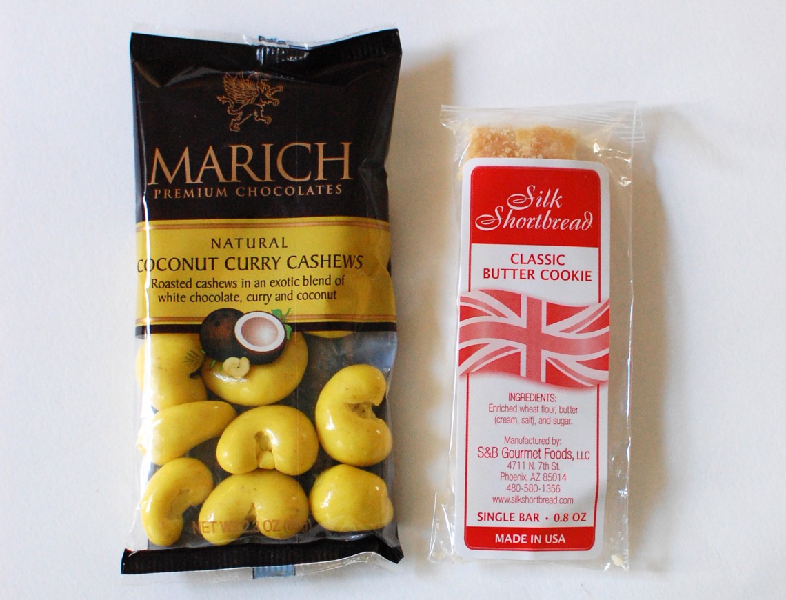 Marich Natural Coconut Curry Cashews – These are “roasted cashews in an exotic blend of white chocolate, curry and coconut”. An interesting combination of flavors, of which I won’t be able to experience cos they’re not vegan. Pssh.