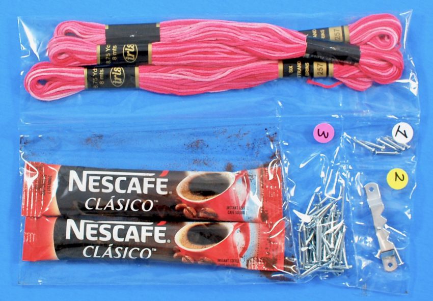 Embroidery Floss, Instant Coffee, Assorted Nails, Picture Hanger