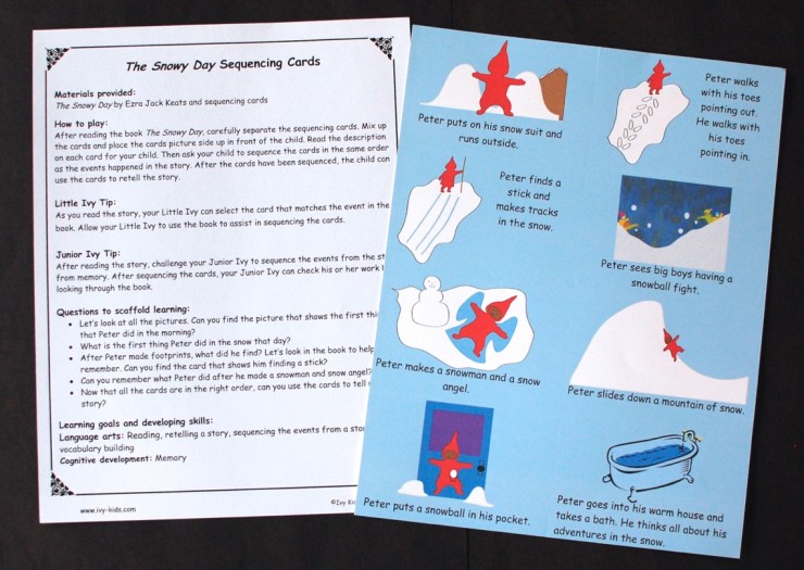 The Snowy Day Sequencing Cards – After reading the book, place the cards above (they have perforated edges to tear them apart) in front of your child. Read each one aloud to them and have them line up each card in order of how they occurred in the story.