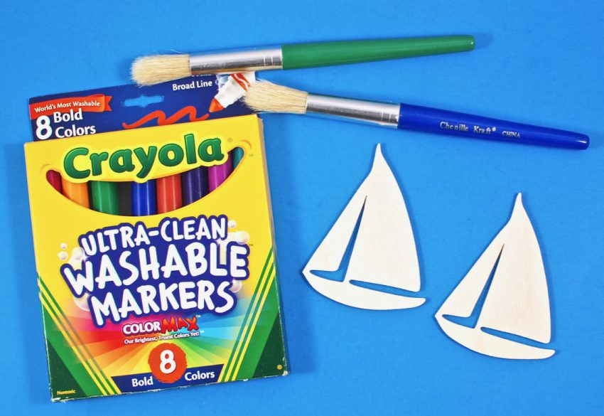 The second project involved exploring with watercolors. It consisted of Crayola Washable Markers, two wooden sailboats, and two paintbrushes. Children were to color the boats using the markers and then paint over them using the paintbrushes and a little water to achieve a neat watercolor effect.