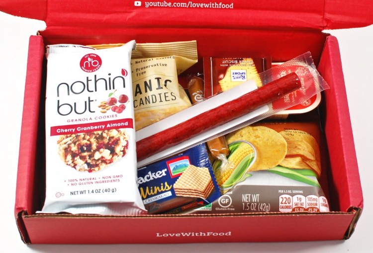 If you’re not aware, Love With Food is one of the most affordable snack subscriptions out there. — It’s only $9.99/month (shipping included) for their “Tasting” box. (You can actually try your first Tasting box for $5.99 shipped!) They also have a “deluxe” box for $19.95/month (free shipping), as well as a 100% Gluten Free version for $24.99/month. Plus, with every box purchased, Love With Food donates a meal to a person in need.