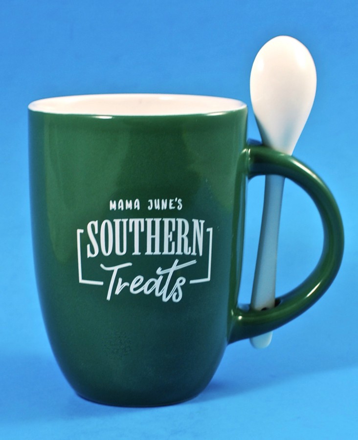 The winter box included quite a few non-food items, which I always enjoy seeing in food-heavy boxes like this one. First up was this green ceramic mug featuring “Bless your heart” in white text on the front, and the Mama June’s Southern Treats logo on the back. It also came with a little white ceramic spoon, which could be perched right inside of the holes on the mug’s handle. Cute!