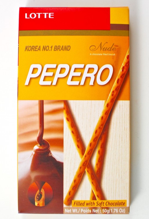 Lotte Nude Pepero – Korean cookie sticks with a creamy milk chocolate filling. (Basically backwards Pocky. 😉 )