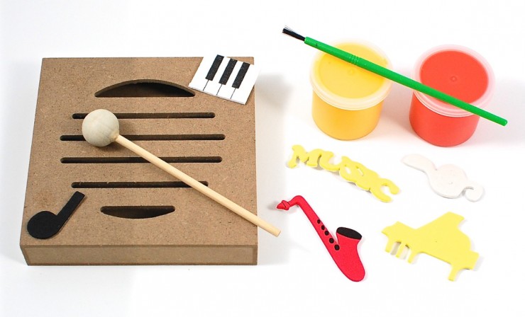 Rhythm Board – This project included a wooden rhythm board, a playing stick, foam stickers, as well as the paints and markers from the first activity.