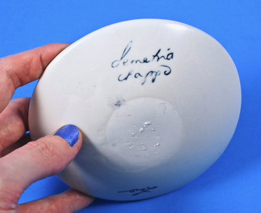 Demetria Chappo is a Brooklyn-based artist who creates “one-of-a-kind pieces inspired by the iconography of the cosmos and sacred geometry”. This Leo-themed stoneware trinket dish was hand-painted and finished with a hand-applied decal. It measures roughly 4.75 inches in diameter and can be used for anything from jewelry, to keys, to crystals, and more.