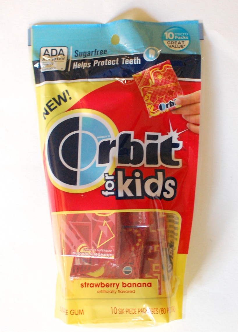 Orbit for Kids Sugar-Free Gum – I was surprised that they included such a large package — This has 10 individual packs of kid-friendly strawberry banana flavored gum. Normally I would expect to see one or two of the small packs in the box, not all 10. Very cool!