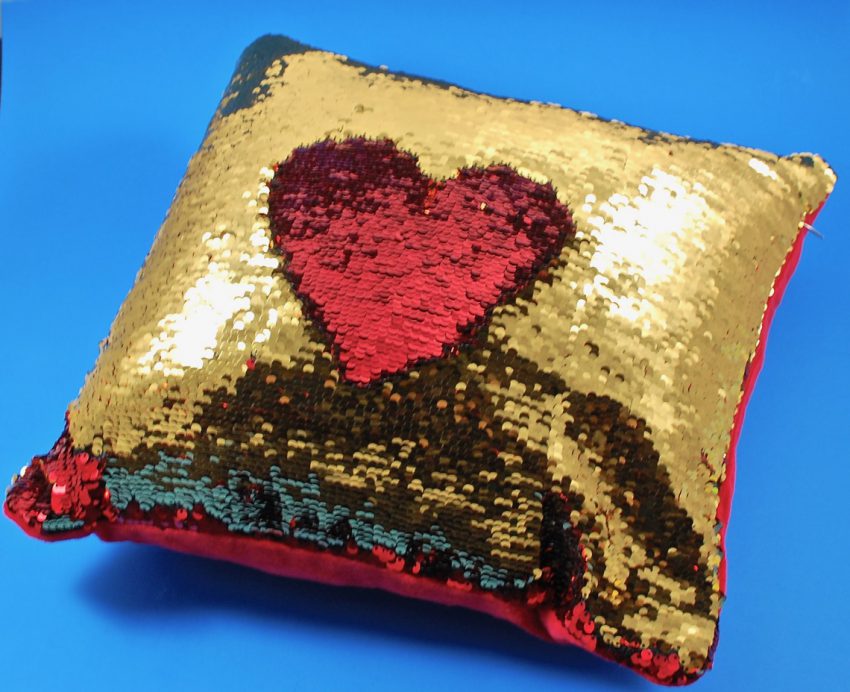 My kids are convinced that this pillow is magic. 😉 It’s actually designed with a layer of sequins that are red on one side and gold on the other. When you run your hand over it one way, the pillow turns red. Wipe it the opposite way and it turns gold. This allows you to have a little fun with it by creating simple designs like the heart in my photo above. Needless to say, this is going in my girls’ room. 🙂