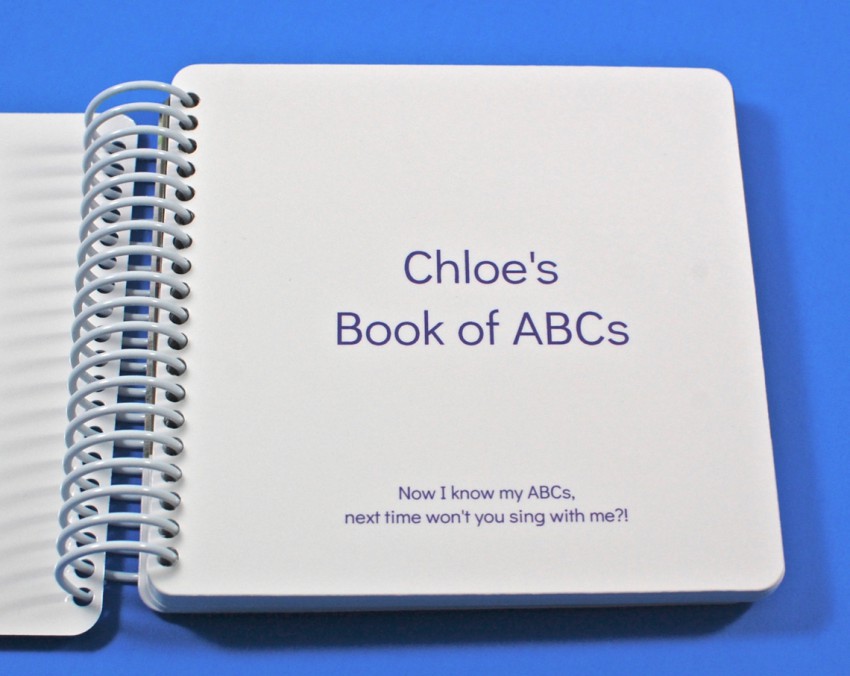 Each of the 5.25″ x 5.25″ books were held together with a large plastic spiral binding, making it easy for little ones to turn the pages and allow each spread to lay flat.