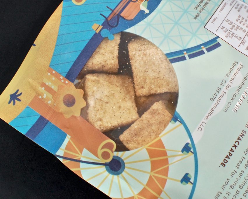 These “premium snacking marshmallows” are made with organic cane sugar and all natural ingredients including cinnamon and pure vanilla extract. I was hoping for a vegan-friendly treat this month, but no such luck. Ah well.