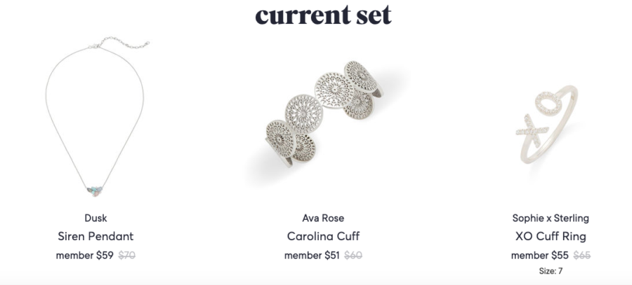All of the pieces in my new set were detailed on the sheet above (also shown in the screenshot from my account). It included photos and retail prices vs. member prices for each item, along with any discounts and credits I may have earned. (Members receive $25 in “forever credit” for each person they refer to Rocksbox. This credit can be used to purchase any item(s) in your set. All members always receive special member pricing that’s lower than retail.)