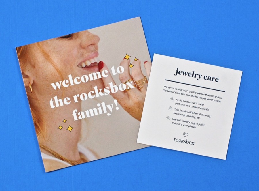 A welcome note provided additional information and tips on getting the most out of the subscription, while a second card included tips for properly caring for your new jewelry.