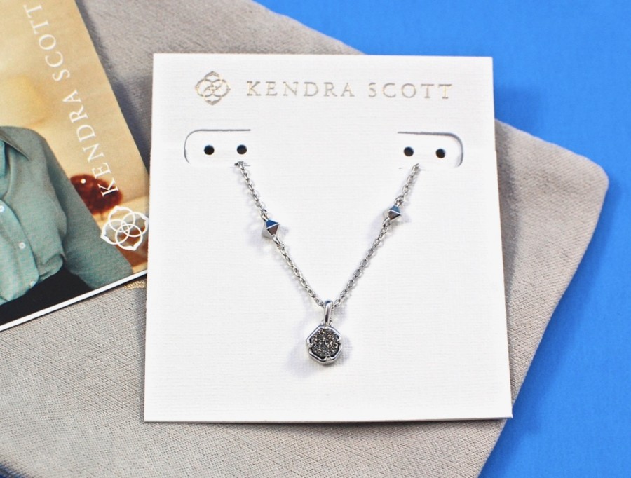 I think I’ve received Kendra Scott necklaces in my last three sets, but I’m not complaining. 🙂 In fact, this one is my favorite one to date! I love the small druzy pendant and the addition of four tiny silver accent beads (2 on each side). The chain is short (16 inches with a 2-inch extender), making it ideal for wearing with shirts/dresses that don’t have low necklines. This one is a definite keeper at a totally reasonable price point. 🙂