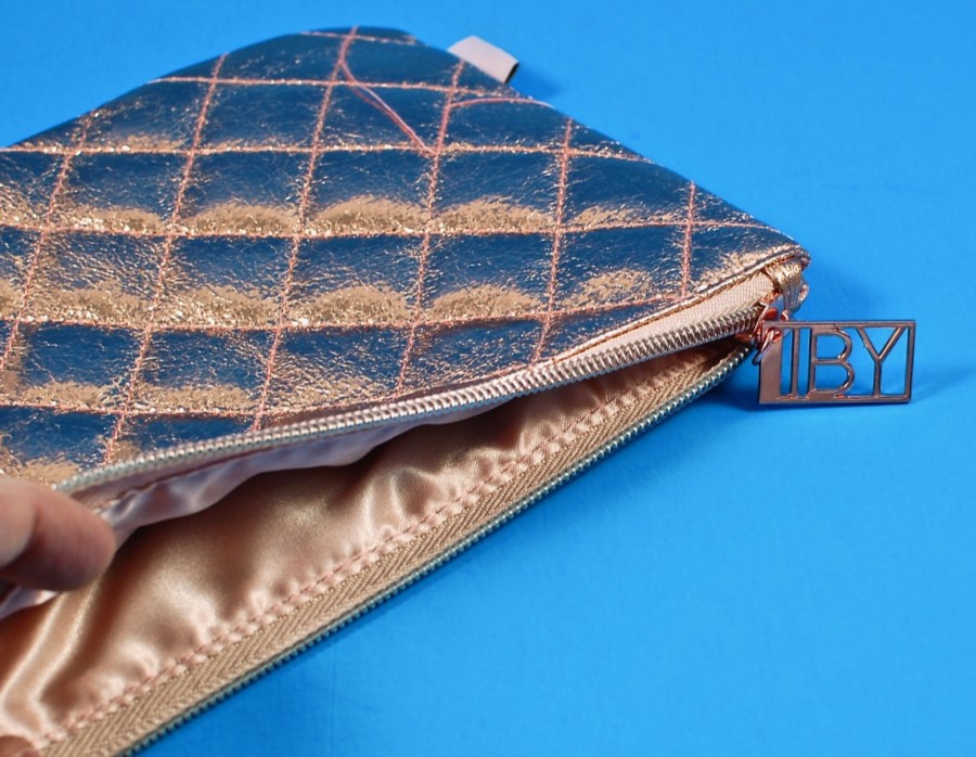 The “Glow Up on the Go” kit above consists of a shimmery gold Cosmetic Bag, three IBY BEAUTY Radiant Glow Highlighters, and a Radiant Glow Fan Brush. The cosmetic bag features a gold IBY zipper pull and is fully lined. All 3 travel-size highlighters are finely milled and made with vegan/cruelty-free ingredients. The shades are (from left to right): Purrr, Prosecco, and Pink Pearl. The rose gold electroplated fan brush is designed to apply and diffuse highlighter for a gorgeous strobe effect. It’s also vegan & cruelty-free!