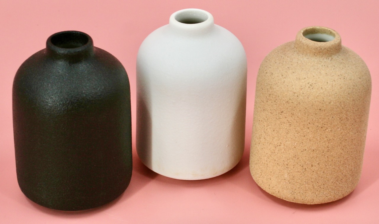 Three small ceramic bottles were provided to serve as the vessels for your reeds/oil. — One white, one black, and one tan/sand colored. Each bottle measures roughly 4 inches tall by 3 inches wide and can hold up to 220mL. All of them have a textured matte finish, except for the black one which has a bit of a glossier sheen.