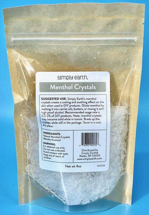 Derived from the peppermint plant, menthol has a natural cooling and soothing effect. These crystals will need to be melted down and blended with a carrier oil in order to utilize them in shower steamers and other recipes.