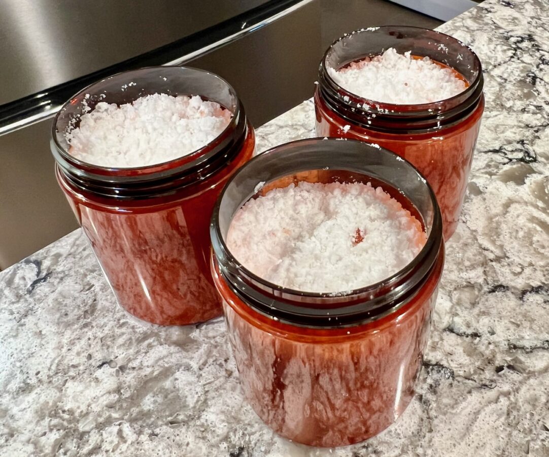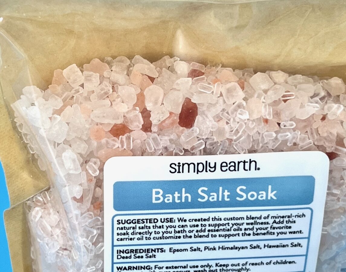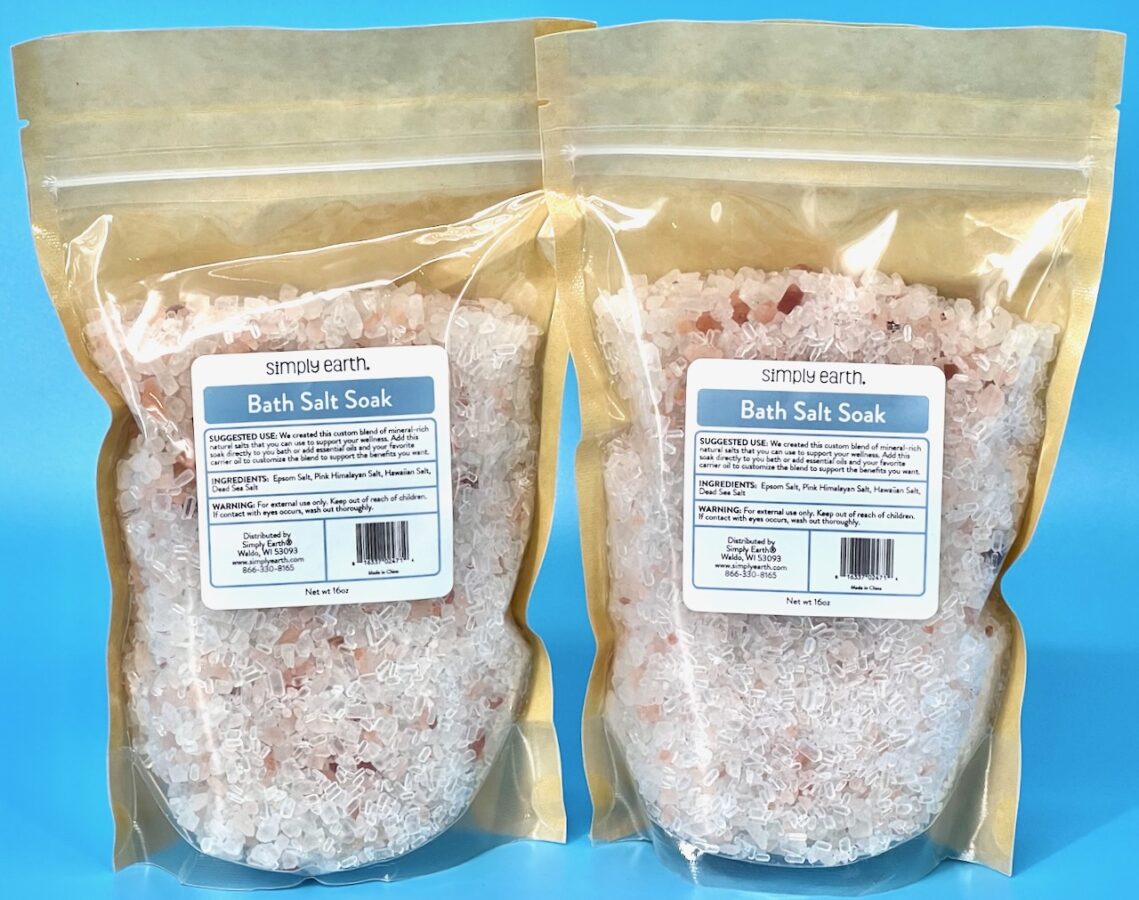 The two packages above contain a custom mixture of epsom salt, Pink Himalayan salt, and sea salt. This mineral-rich blend will be the main ingredient for making the Mentholated Bath Salts and Detox Salt Bath recipes in the kit.