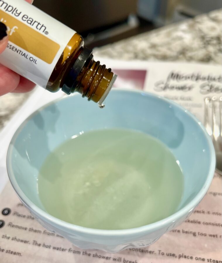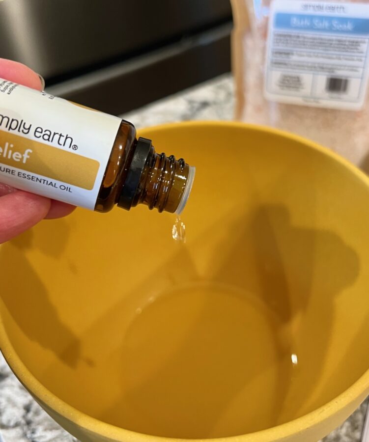 To that bowl, I added my choice of essential oil — the Relief blend.