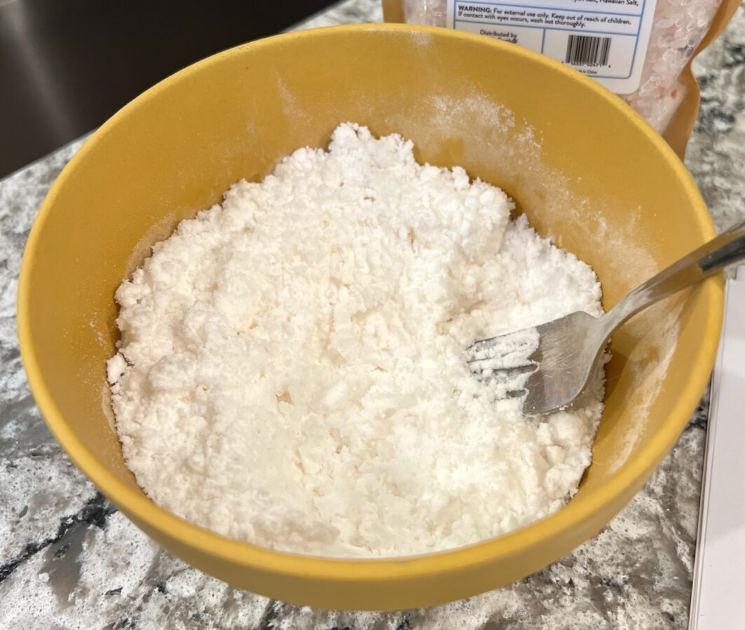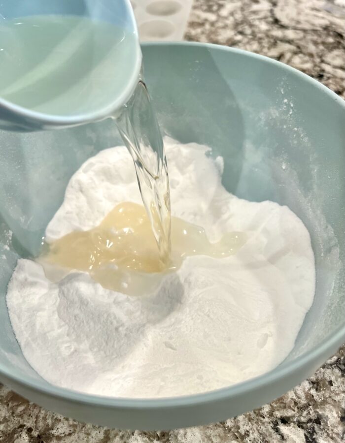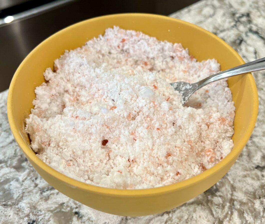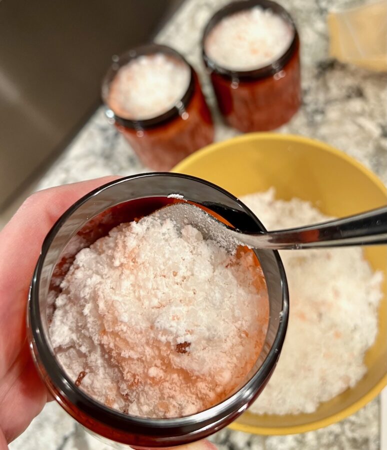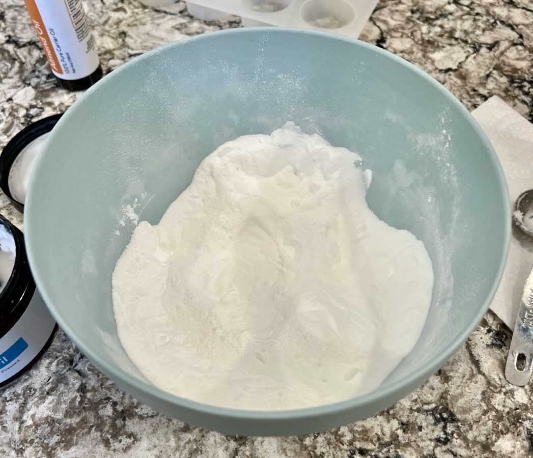 I started by stirring together the baking soda, Natrasorb, and menthol crystals in a large bowl.
