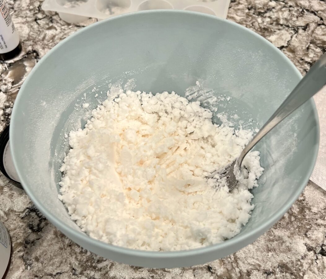 Using a fork, I combined everything together until I was able to pack it in my hand like a snowball. Carrier oil was added in small increments until the right consistency was achieved.