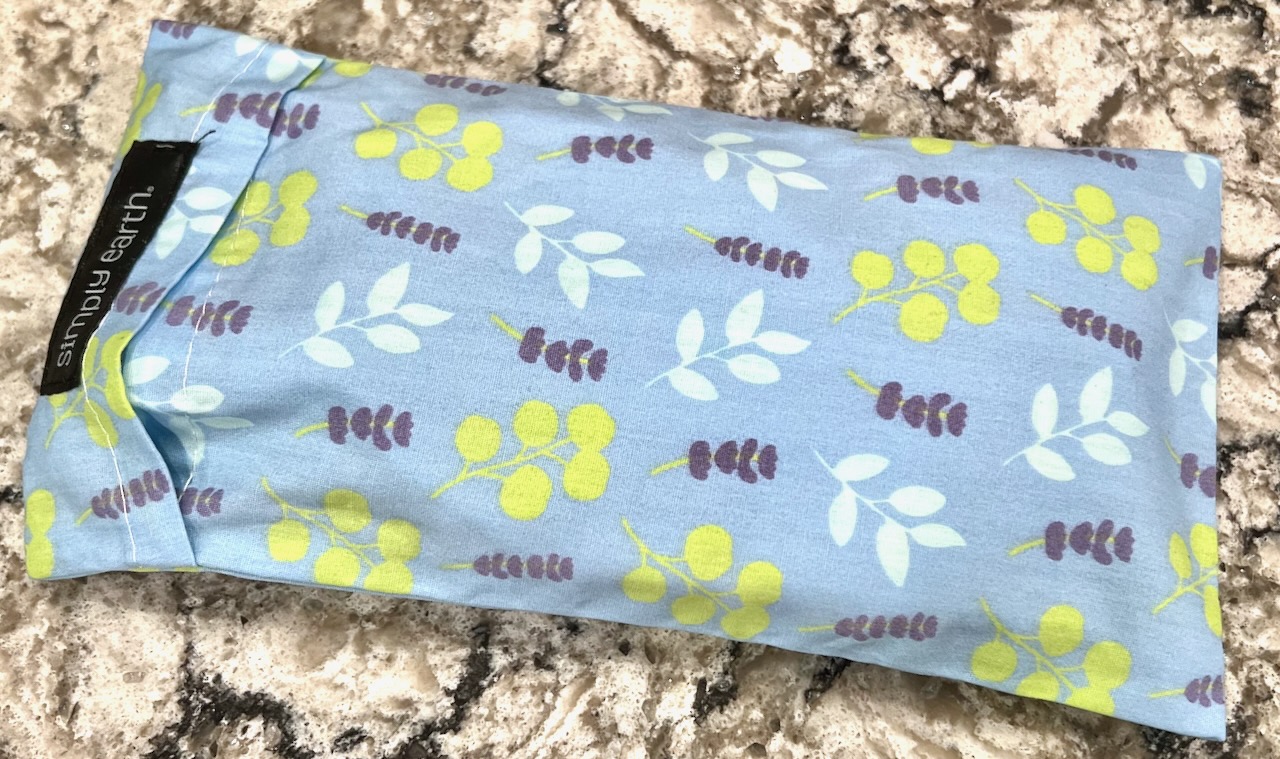 Once filled, simply slide the pillow into the printed “case” and heat in the microwave for about one minute. To use with essential oils, place a few drops of oil onto a cotton ball and tuck inside of the warmed rice bag. (If you microwave the bag with the oils already added, they will evaporate. That’s why you add it separately afterward. It also makes it easier to swap out different scents, just by changing the cotton ball.) The bag can also be placed in the freezer to use for cooling comfort.