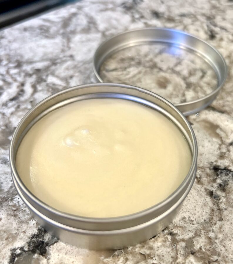 Materials required: Shea butter, beeswax, carrier oil (I used almond), essential oil, and a 2 oz tin.