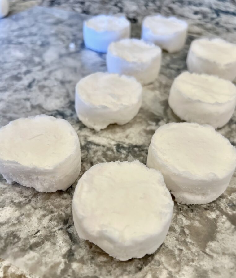 I then placed them on a sheet of wax paper to allow them to set/dry a little longer. Once they seemed “done”, I put them all in a ziplock bag for future use. — These will be great to toss in the shower as soon as I feel an inevitable cold coming on!