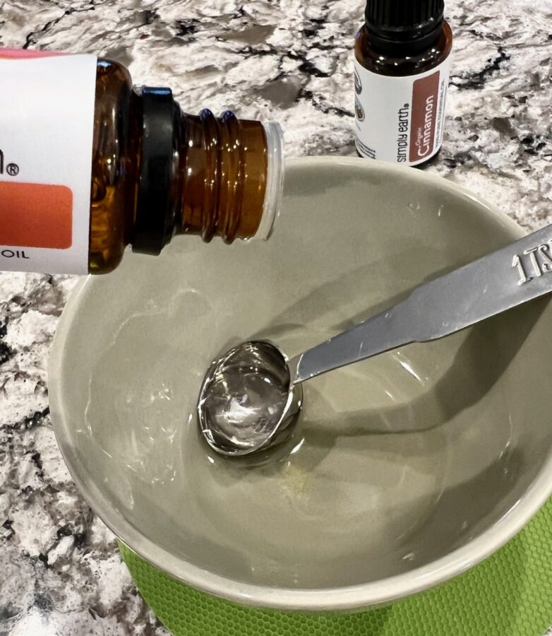 Supplies needed: Autumn air essential oil blend, sweet orange essential oil, and cinnamon essential oil.