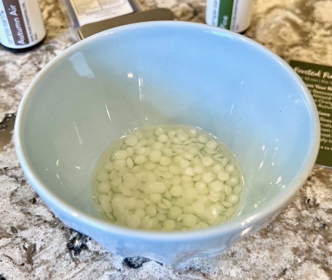 Once again, I needed to heat the first two ingredients — beeswax and almond oil — until fully liquified.