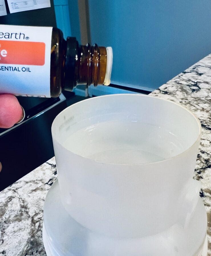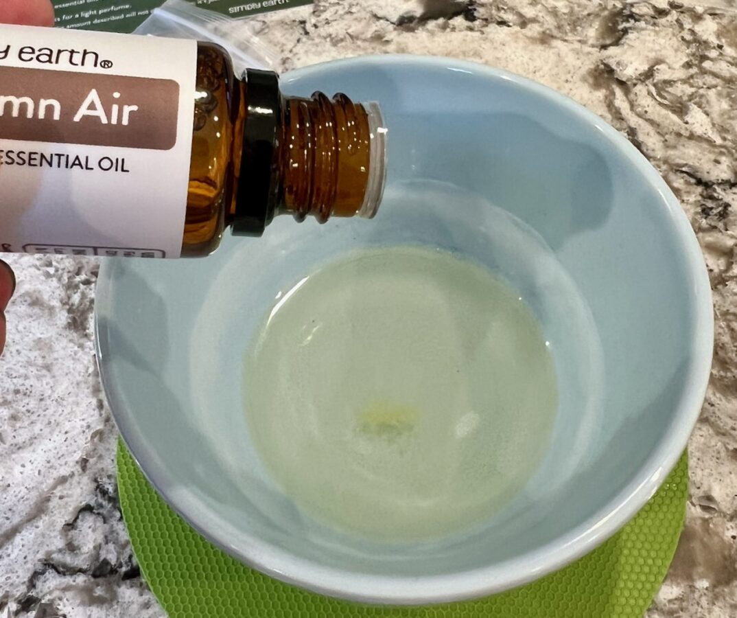 Once liquified, I added the specified amount of essential oil(s).