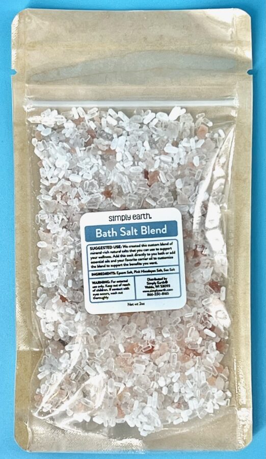The package above contains a custom mixture of epsom salt, Pink Himalayan salt, and sea salt. This mineral-rich blend will be the main ingredient for making this month’s “Northern Lights Bath Salts”.